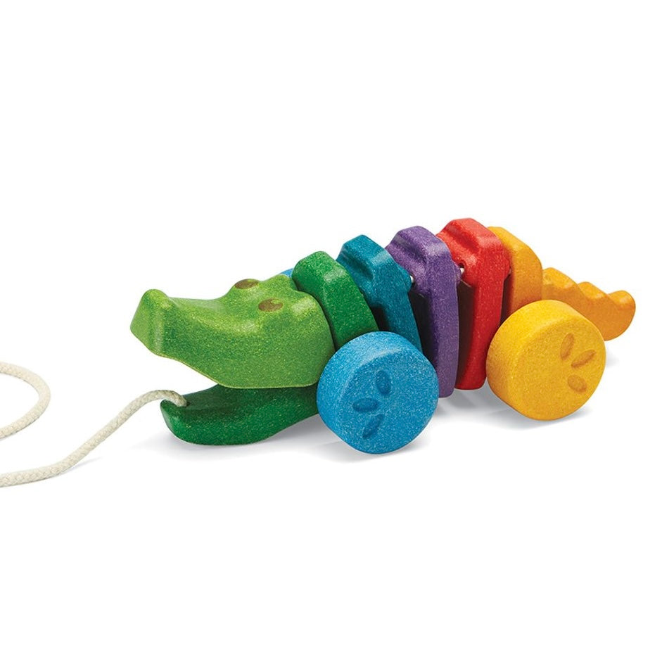 This colorful Rainbow Dancing Alligator is made from PlanWood. When children pull the Alligator, its head and tail move up and down – making a fun click-clack sound.