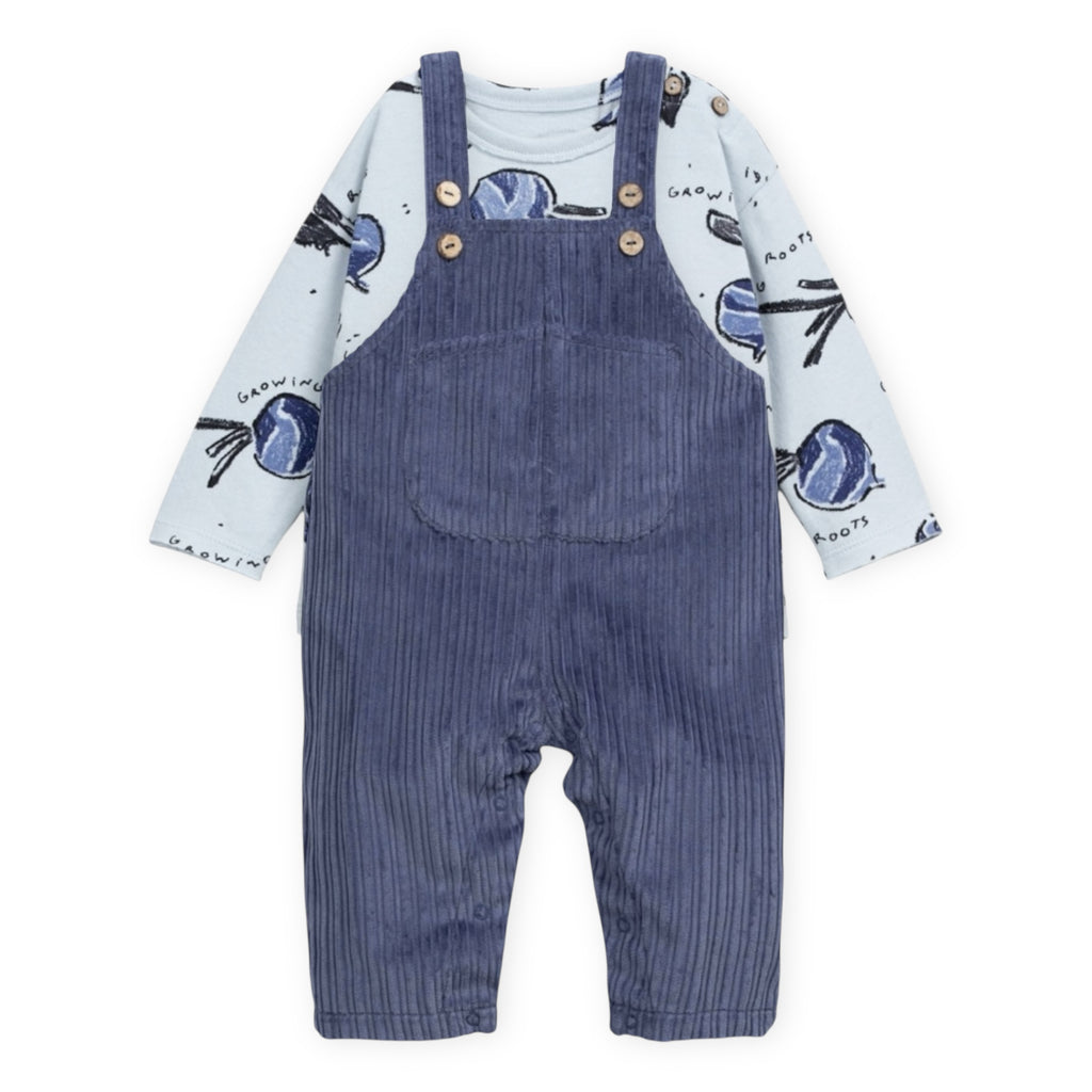 Play Up Baby Growing Roots Print l/s Tee & Corduroy Overalls Set ~ Blueberry