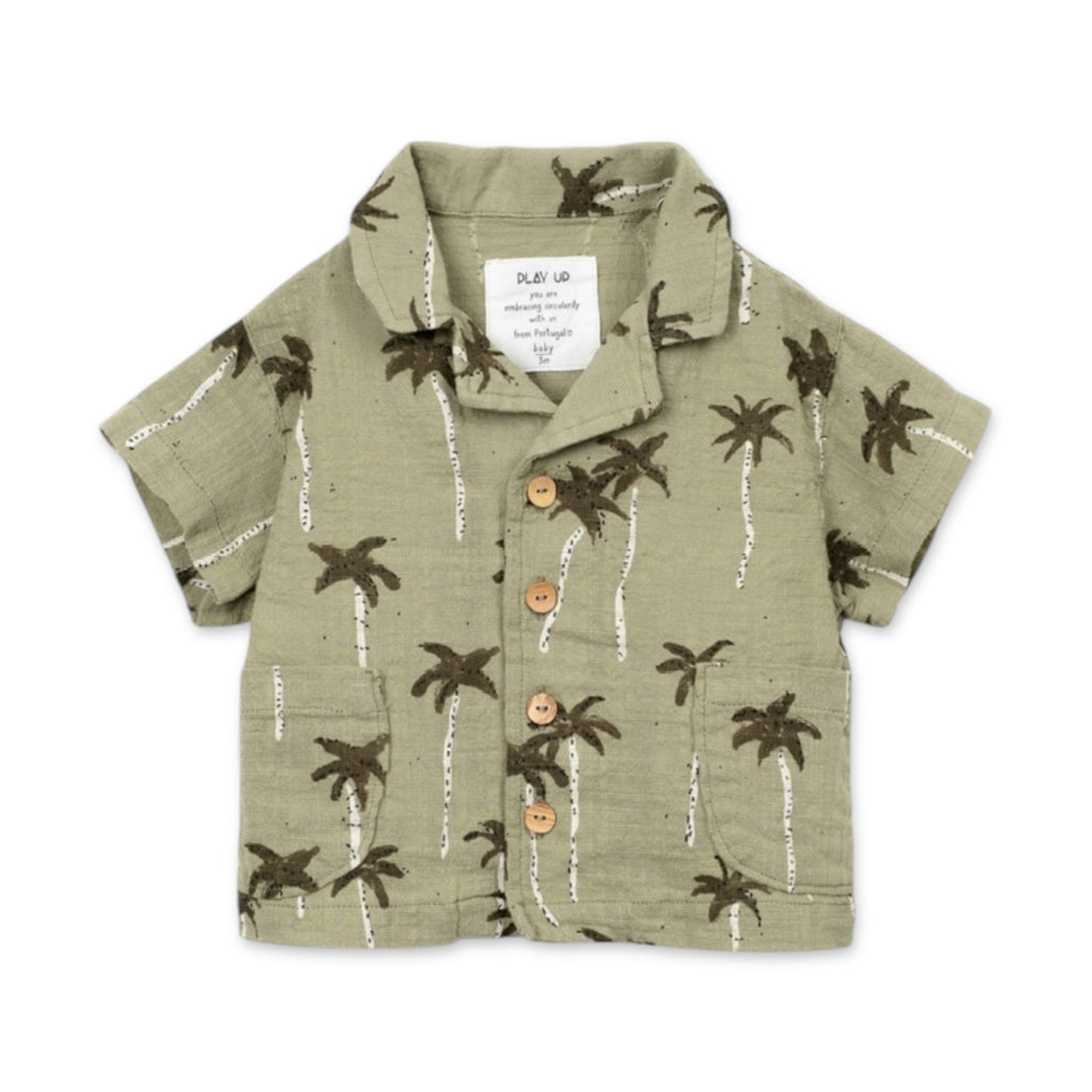 Play Up Baby Palm Tree Print Woven Shirt & Shorts Set ~ Light Olive