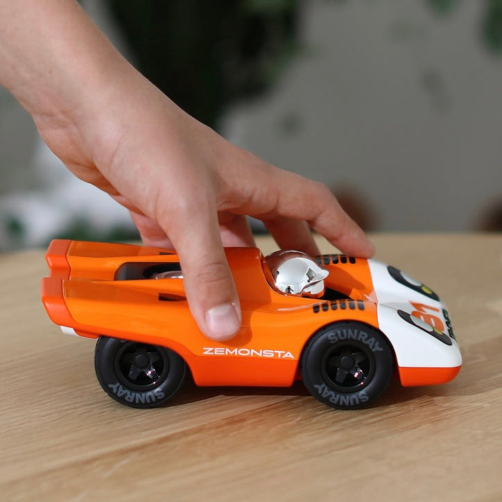Zemonsta car is a formidable and fierce track eater, inspired by the legendary Porsche 917. Designed as an abstract interpretation of the “beast of beasts,” it carries untamed fury and bold presence in every curve. With its striking form and powerful stance, this collectible toy car embodies speed, imagination, and...
