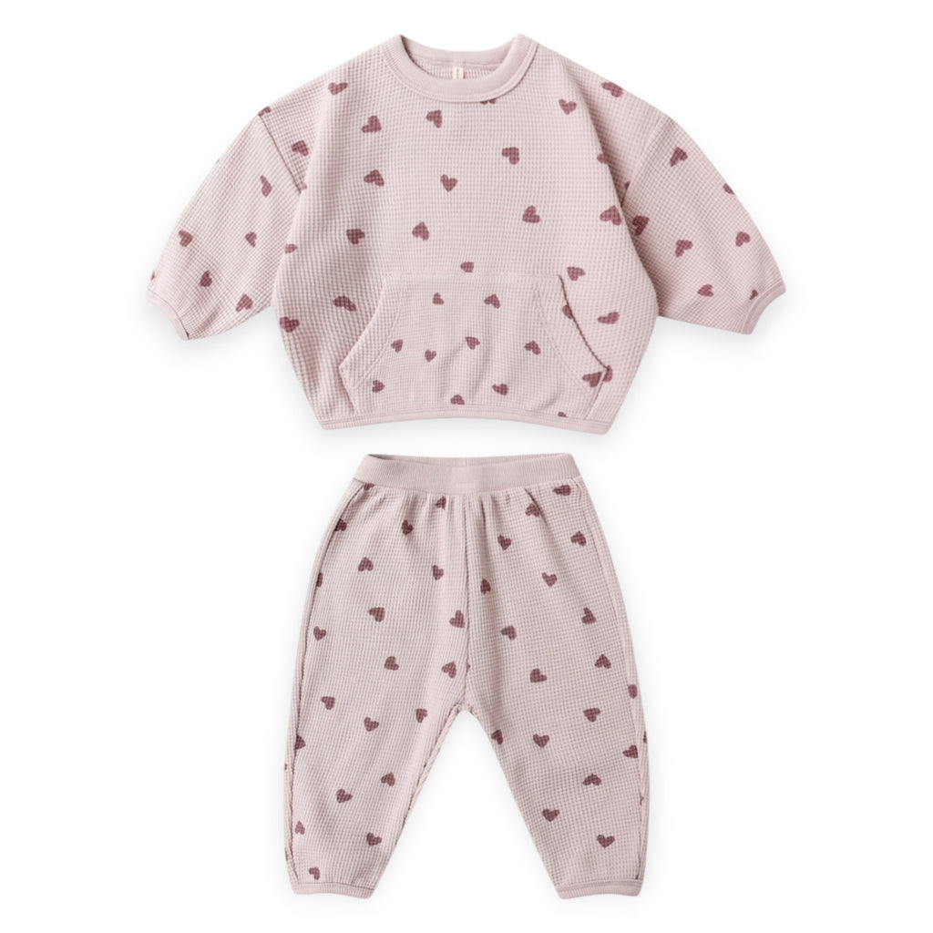 Quincy Mae Waffle Slouch Lounge Set ~ Hearts/Lilac