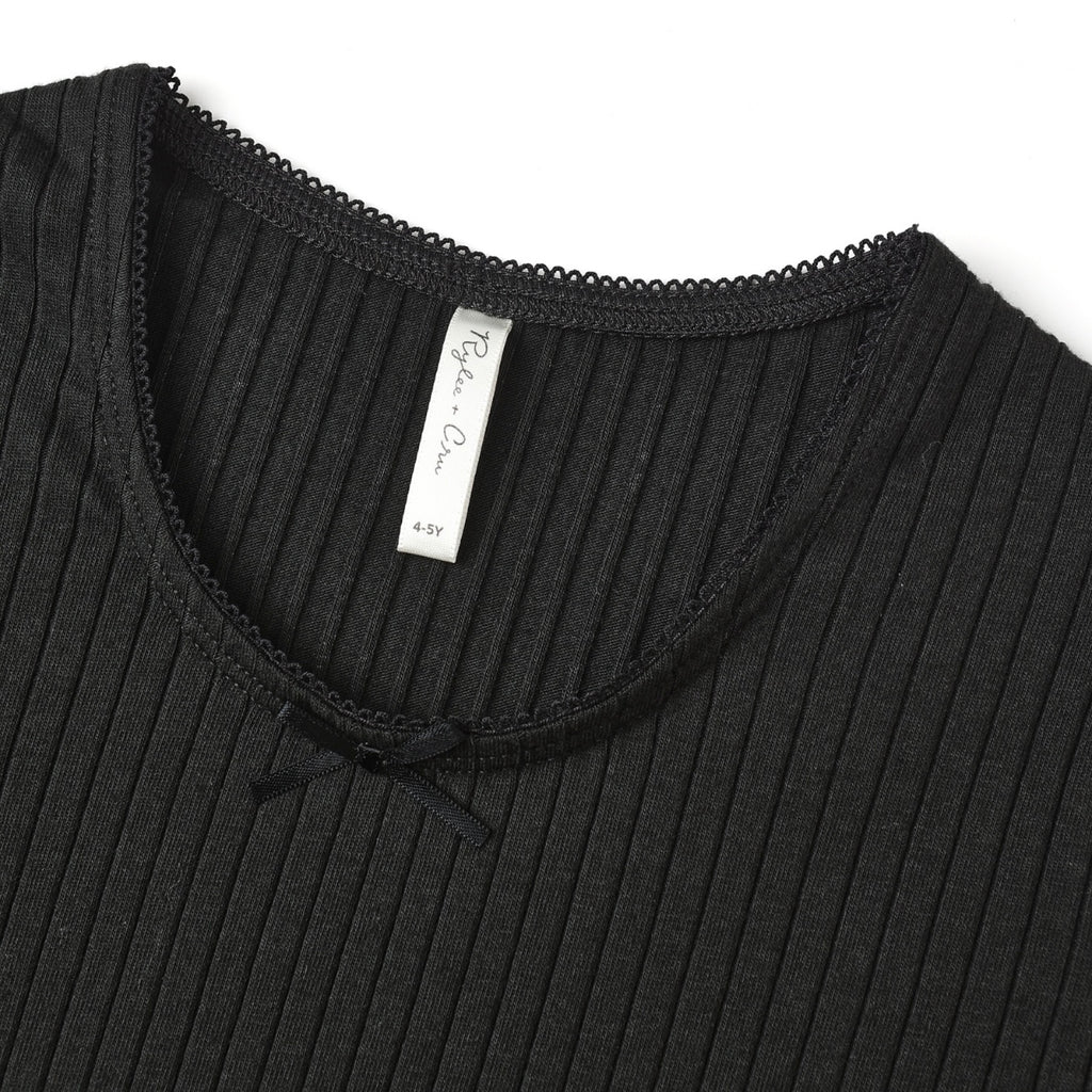 Rylee + Cru Girls Ribbed l/s Top & Wide Leg Overalls Set ~ Black/Leopard