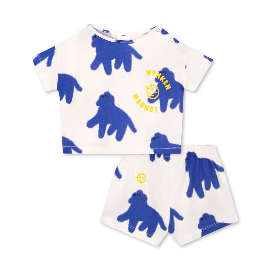 Wynken Baby Mini Bon Bon Dog Print Tee & Shorts Set ~ White/Artist Blue