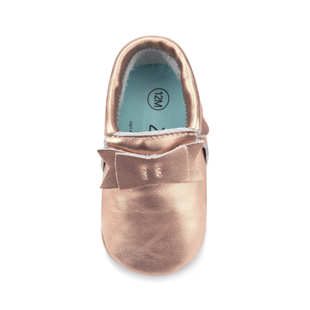 Zutano Leather Bow Moccasins ~ Rose Gold